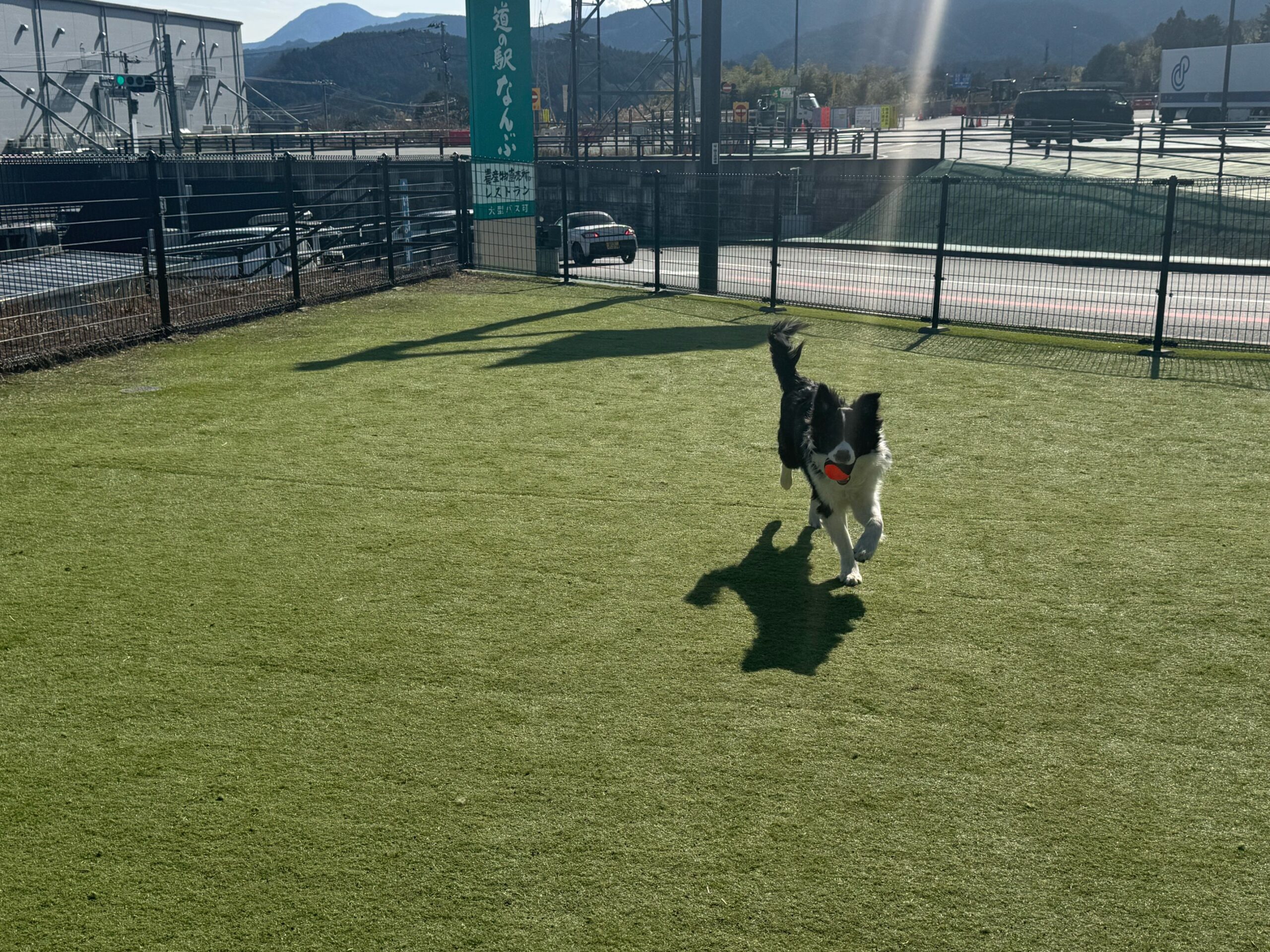 道の駅なんぶのドッグラン。ボール遊びをするバロン